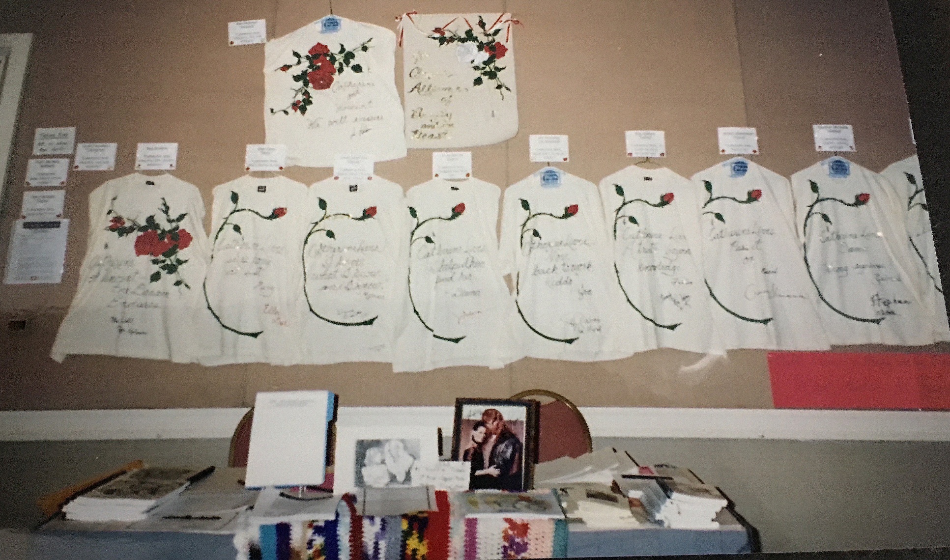 which featured original fan art, a handmade afghan, and donated zines from fanfic authors,