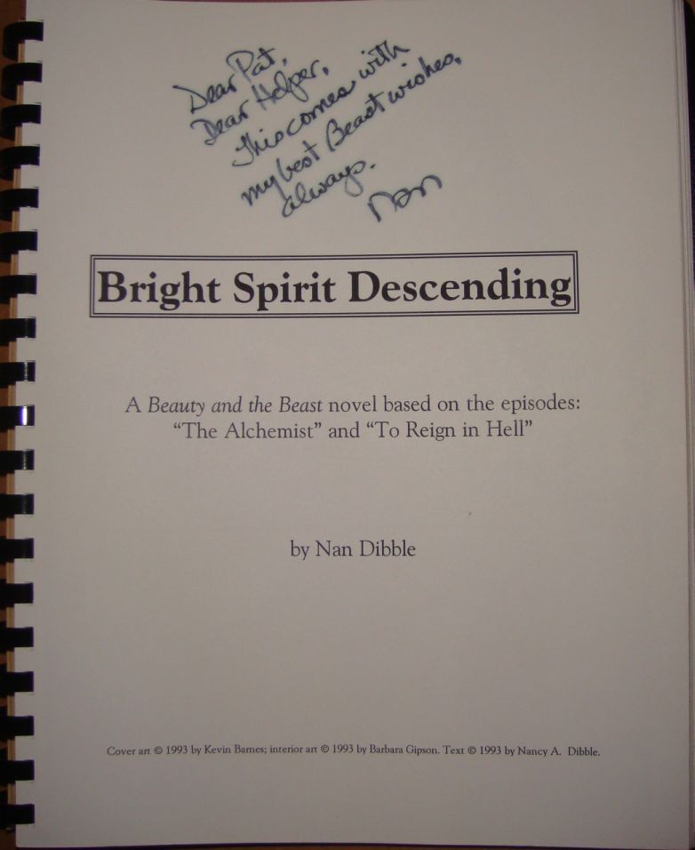 1993 novel, "Bright Spirit Descending", written by Nan Dibble and based