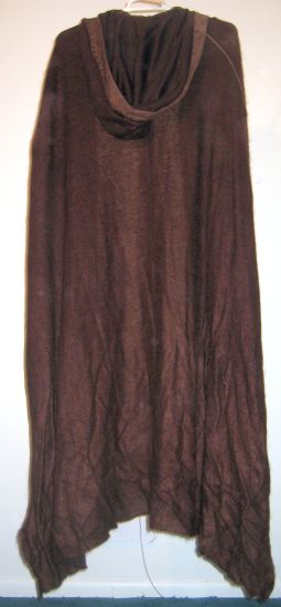 Description: Father full length reddish brown tweed cloak with hood and