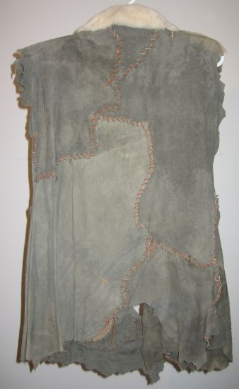 sheepskin collar and front border. Metal clamp at bottom. Seen in "The