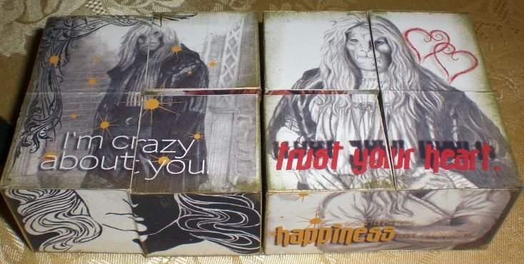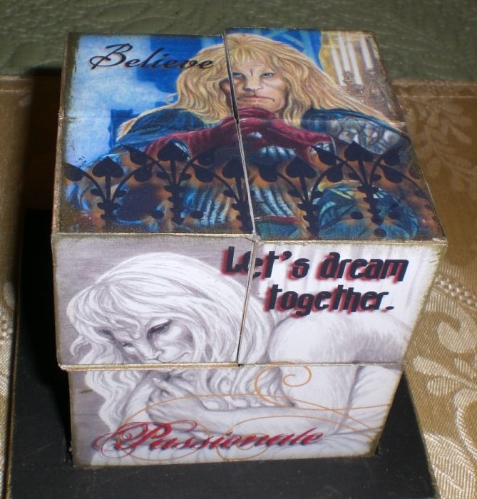 Description: Cube puzzle with various faces and images of Vincent, by