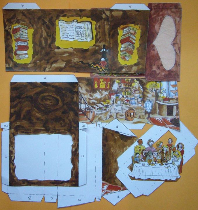 Assembled version of cutout theatre stage featuring figures of