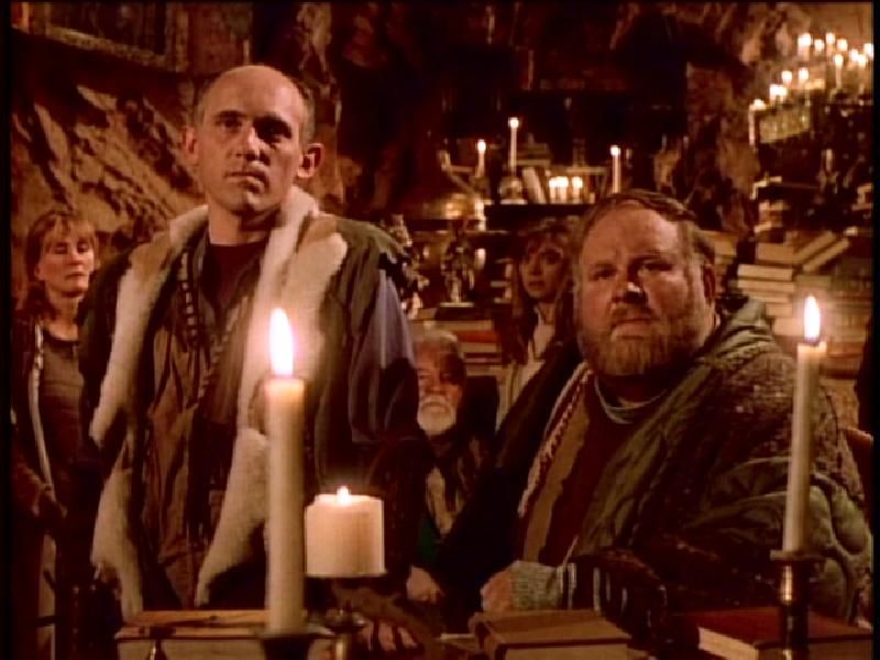 ![]() Autographed photo of Ritch Brinkley, fan (Laura) in Brigit O'Donnell costume (see 'Masques' episode) and Armin Shimerman "Celebration of Life" cruise, 1991 |